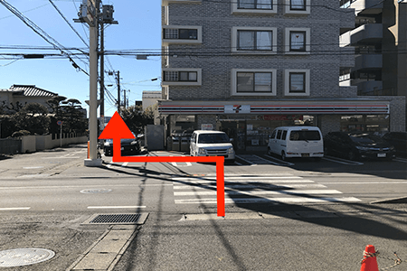 7横断歩道を渡り、セブンイレブンの左手奥に進みます。